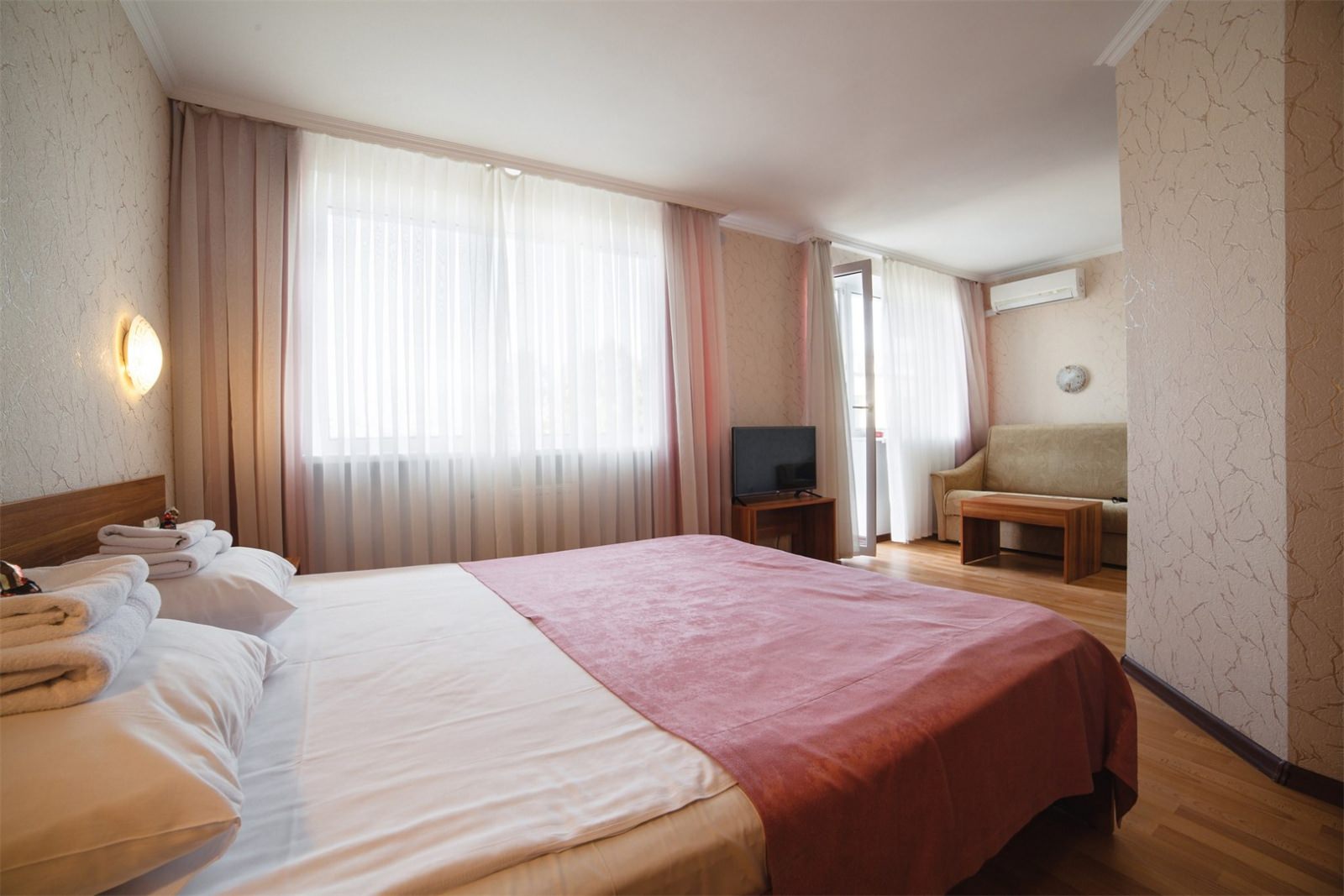 Комфортный двухместный номер с 1 двуспальной кроватью или 2 односпальными кроватями в корпусе «Антей». Во всех номерах есть удобный балкон с видом на море, а также комплект мебели для отдыха в теплое время года. Основное место -2, дополнительное место -2 (на раскладном диване). Максимальное размещение: 4 человека. Все номера выполнены как студия, с раскладным диваном в зоне отдыха.